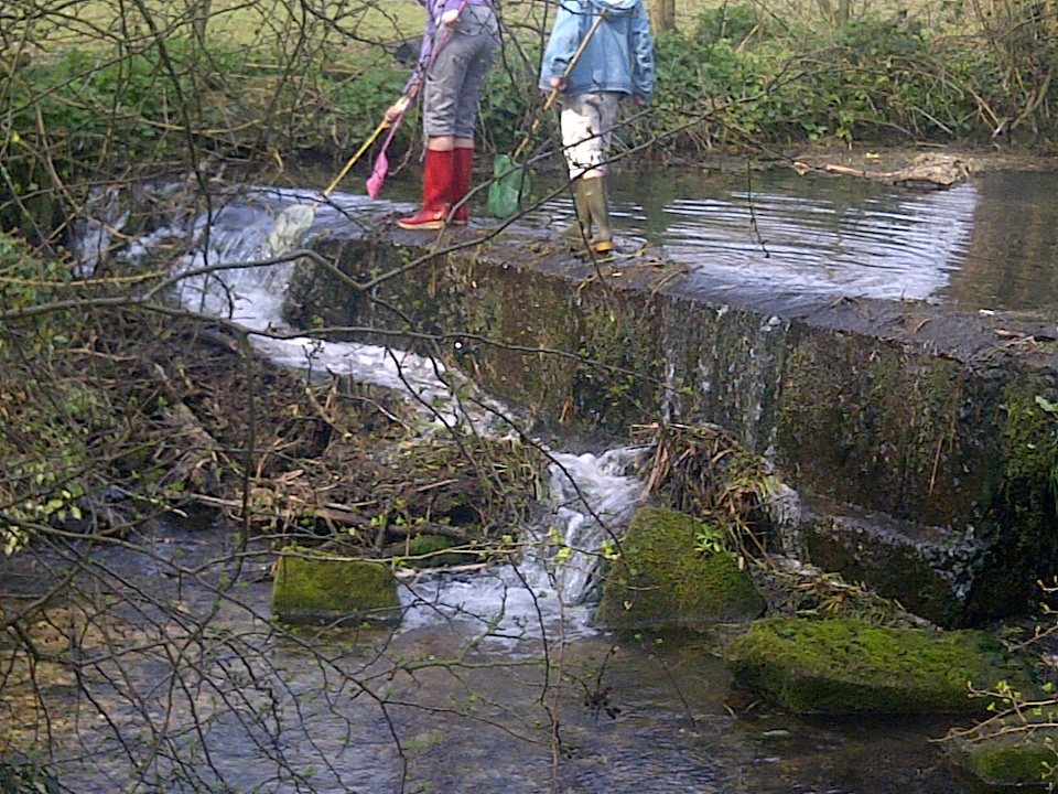 Hubbie rounded up the relunctant troops, encouraged them to don their wellies, gather up the kit: bug observation tank - check, nets, jackets, caps, camera (oh dear, not charged!) and off we went, on foot from the house.